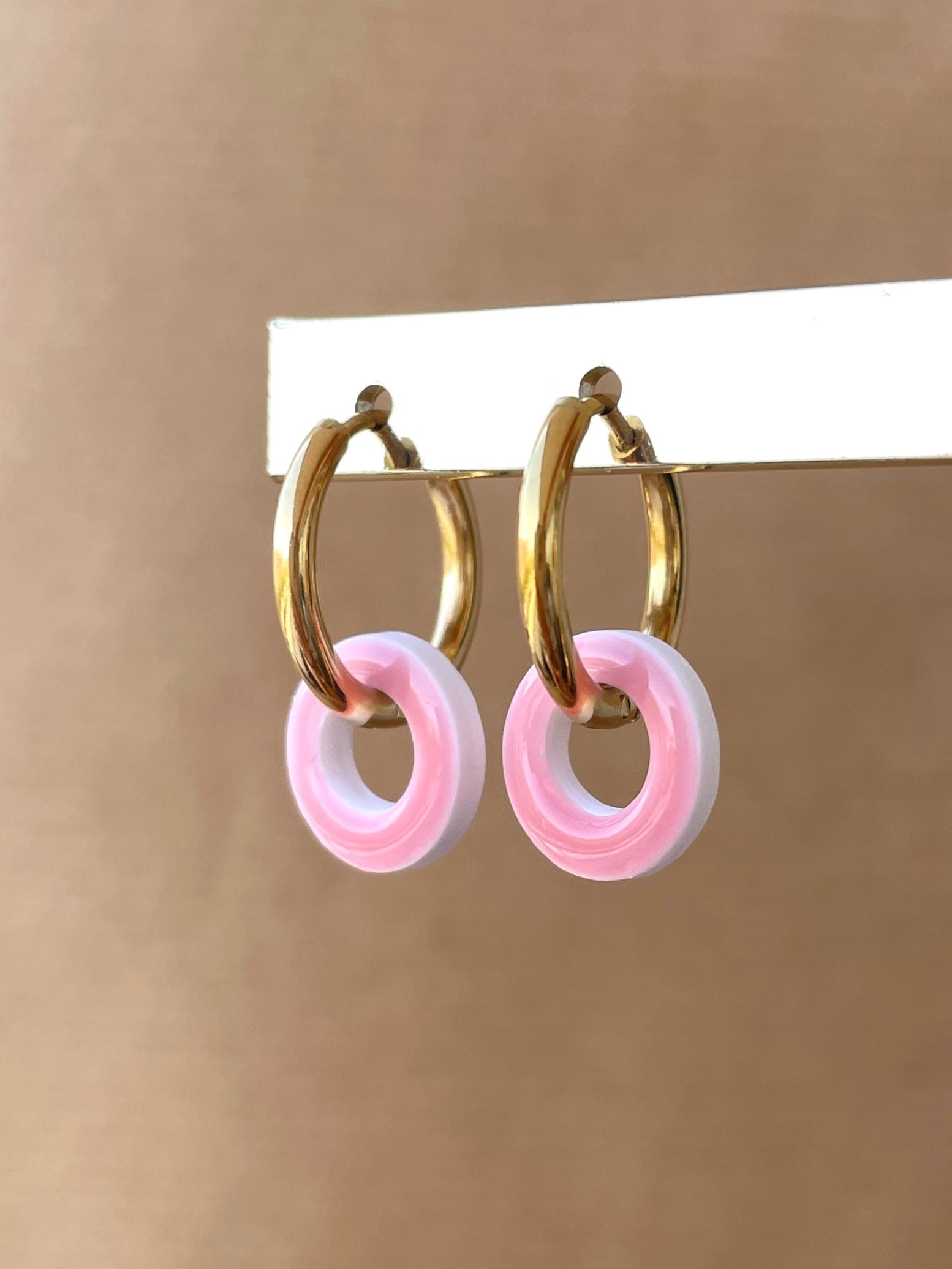 Pendientes de aro con personalidad. Diseño circular moderno en tonos vibrantes. Ligeros, cómodos y originales.