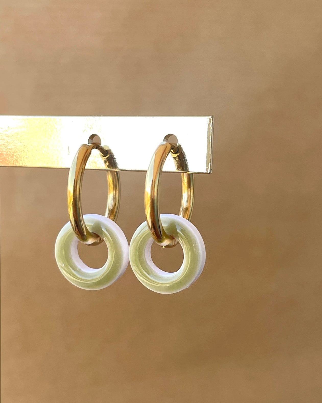 Pendientes de aro con personalidad. Diseño circular moderno en tonos vibrantes. Ligeros, cómodos y originales.